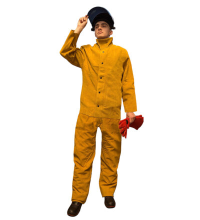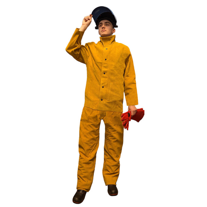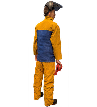 Брюки кожаные из коровьего спилка для защиты от тепла и использования при сварке и смежных процессах, от механических воздействий и защиты от термического воздействия, от искр и брызг расплавленного металла, окалины, контакта с тепловыми поверхностями, влияния конвективной теплоты.
