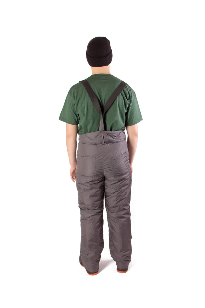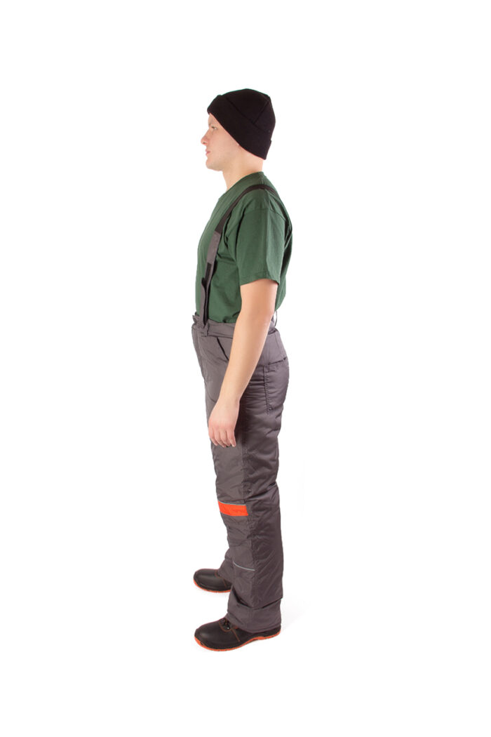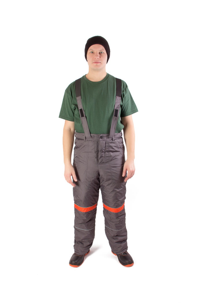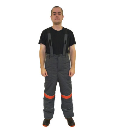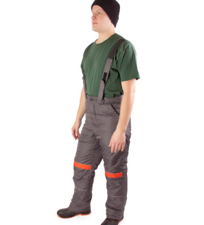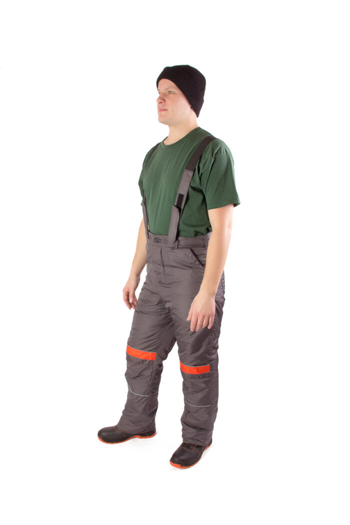 Утепленные брюки прямого силуэта со съемными подтяжками, на поясе застежка, 2 шт пластиковых пуговиц и гульфик на пуговицах (3 шт. пластиковые) с хомутиками под пояс (5 шльовок) и 2- мя горизонтальными хомутиками для крепления подтяжек.