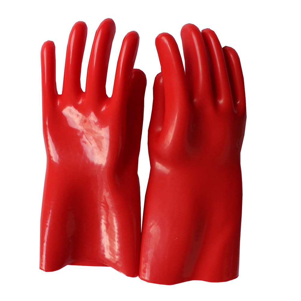 Длина перчатки, не менее 350 мм, ширина ладони 130±6 мм, толщина стенки перчатки, не менее 1,10 мм.