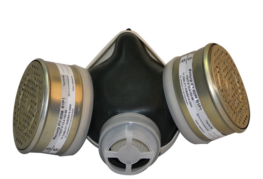Фільтр В1Р1 – неорганічні гази та пари за винятком оксиду вуглецю (сірчистий ангідрид, соляна та азотна кислота, хлор-і фосфорорганічні отрутохімікати).