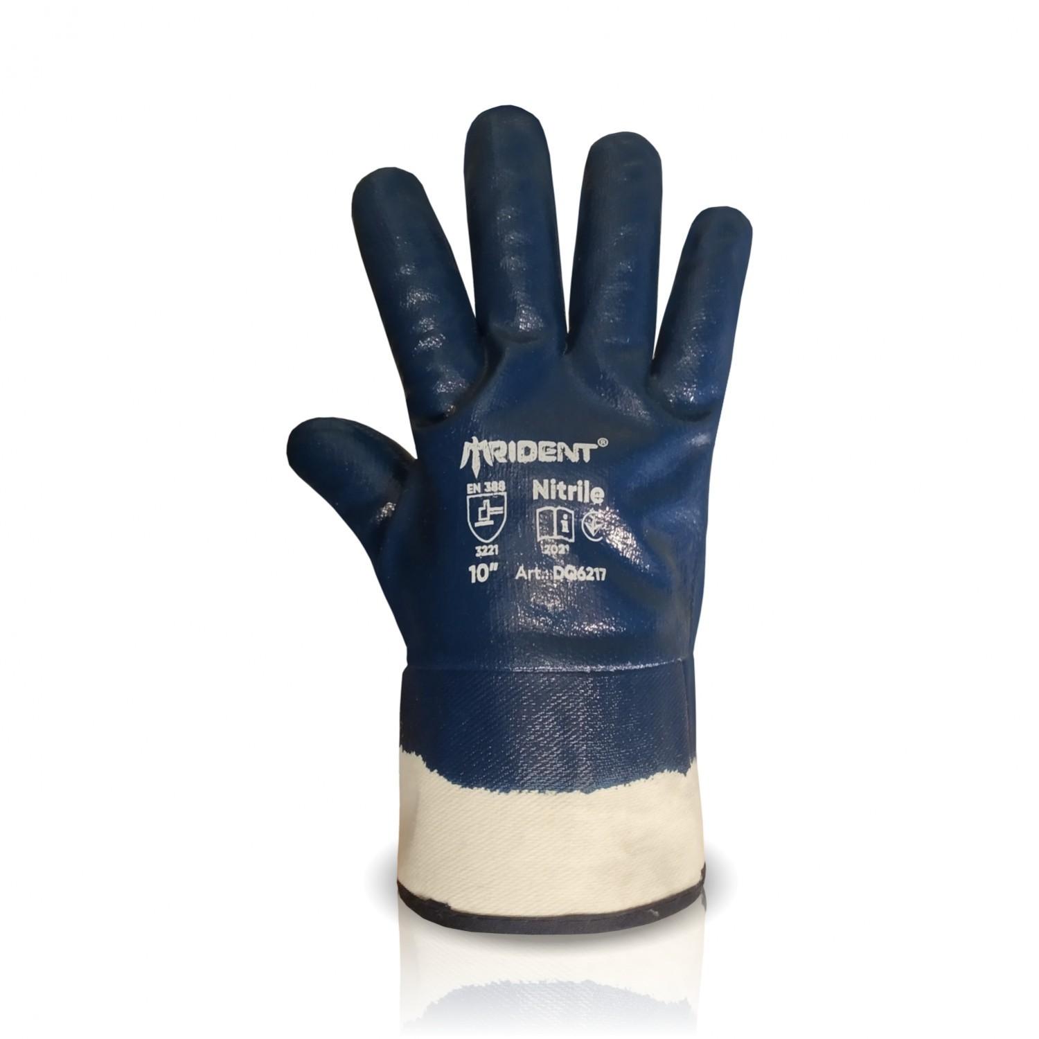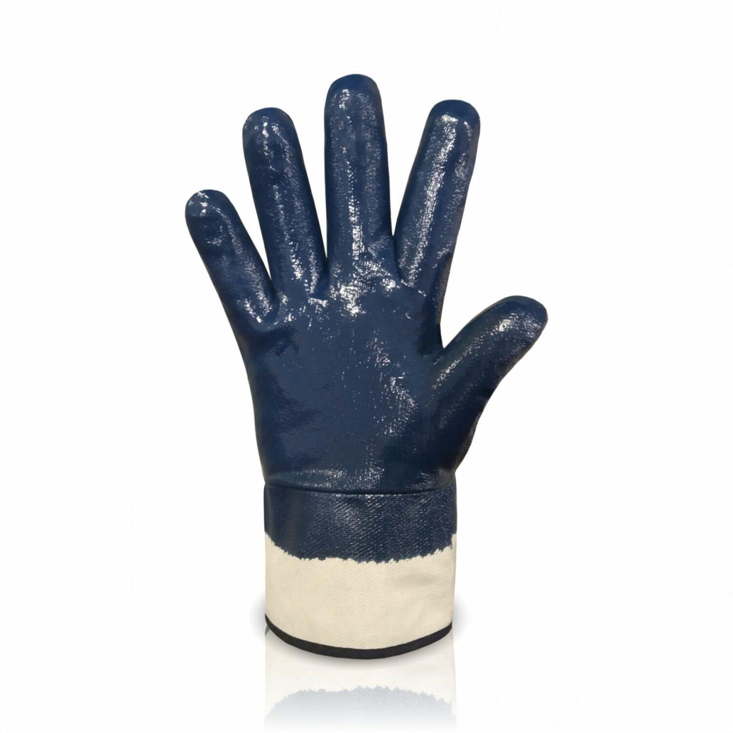 Рукавички на трикотажній основі з повним двошаровим нітриловим покриттям синього кольору.