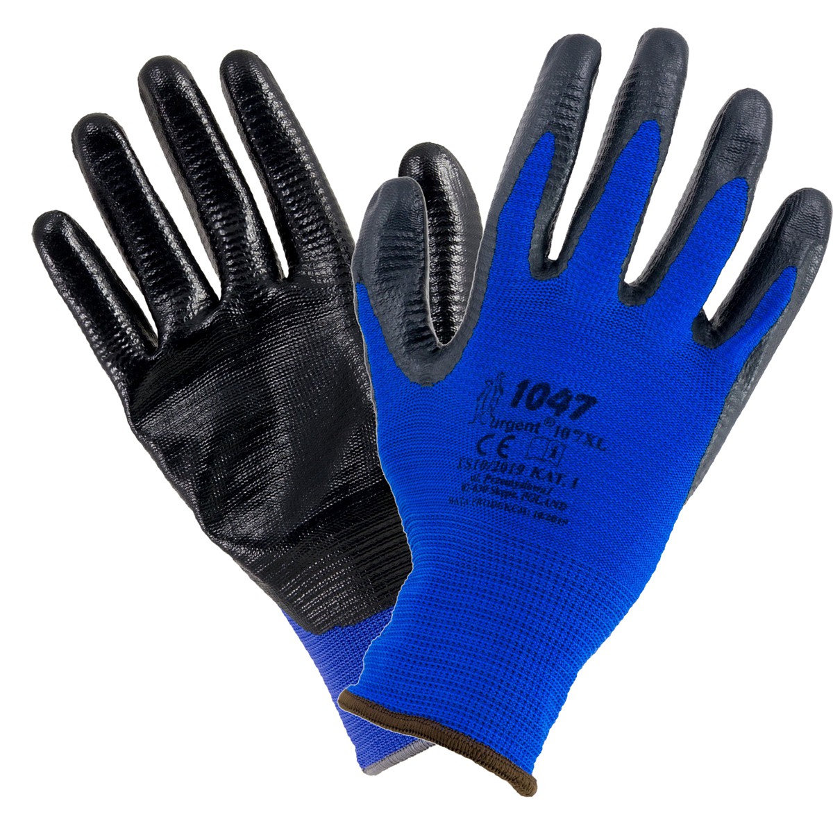 Рукавички URGENT поліестерові з рельєфним нітрил. покриттям арт.1047 (синій / чорний)